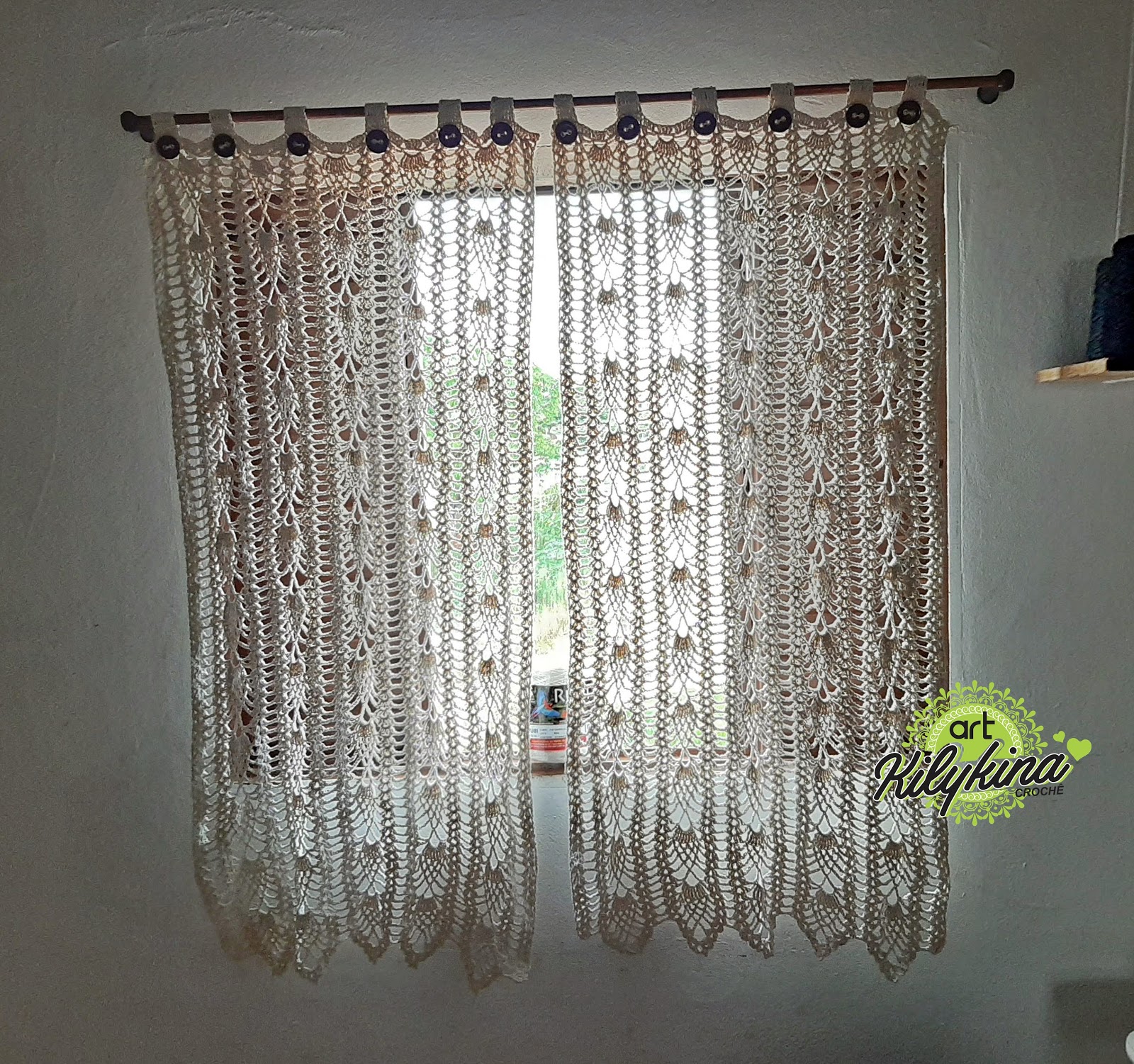 CORTINA PONTO ABACAXI DE CROCHÊ